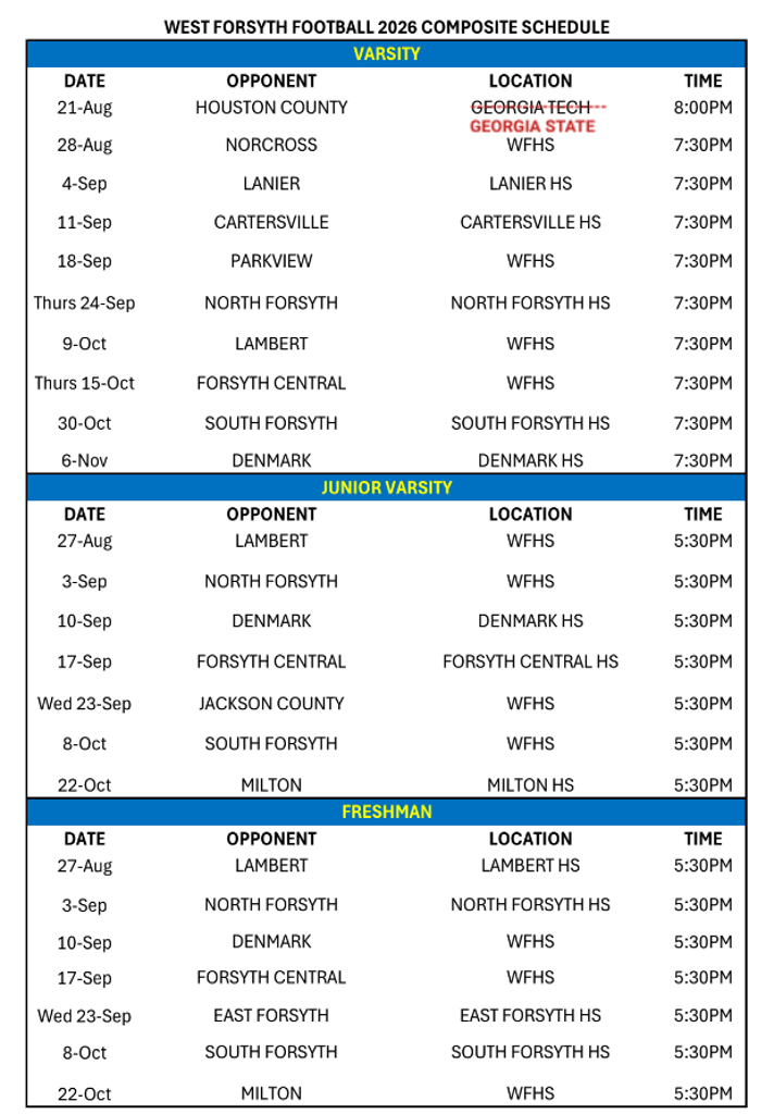 West Forsyth Touchdown Club, Inc. • 2300 Bethelview Road • Suite 100-437• Cumming, GA 30040 • Email Webmaster